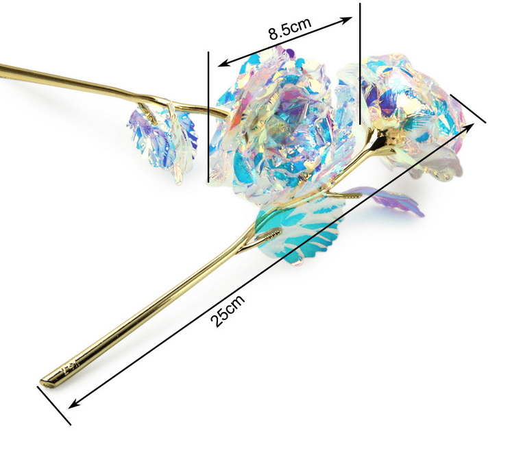 Anschließend setzen wir jedes einzelne irisierende Hologramm-beschichtete Blütenblatt von Hand auf, wodurch die Rosen einen besonders auffälligen Effekt erzielen!